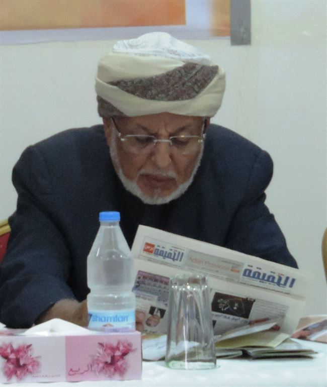 ا د عبد العزيز حبتور رئيس جامعه عدن يتصفح جريدة الحقيقة